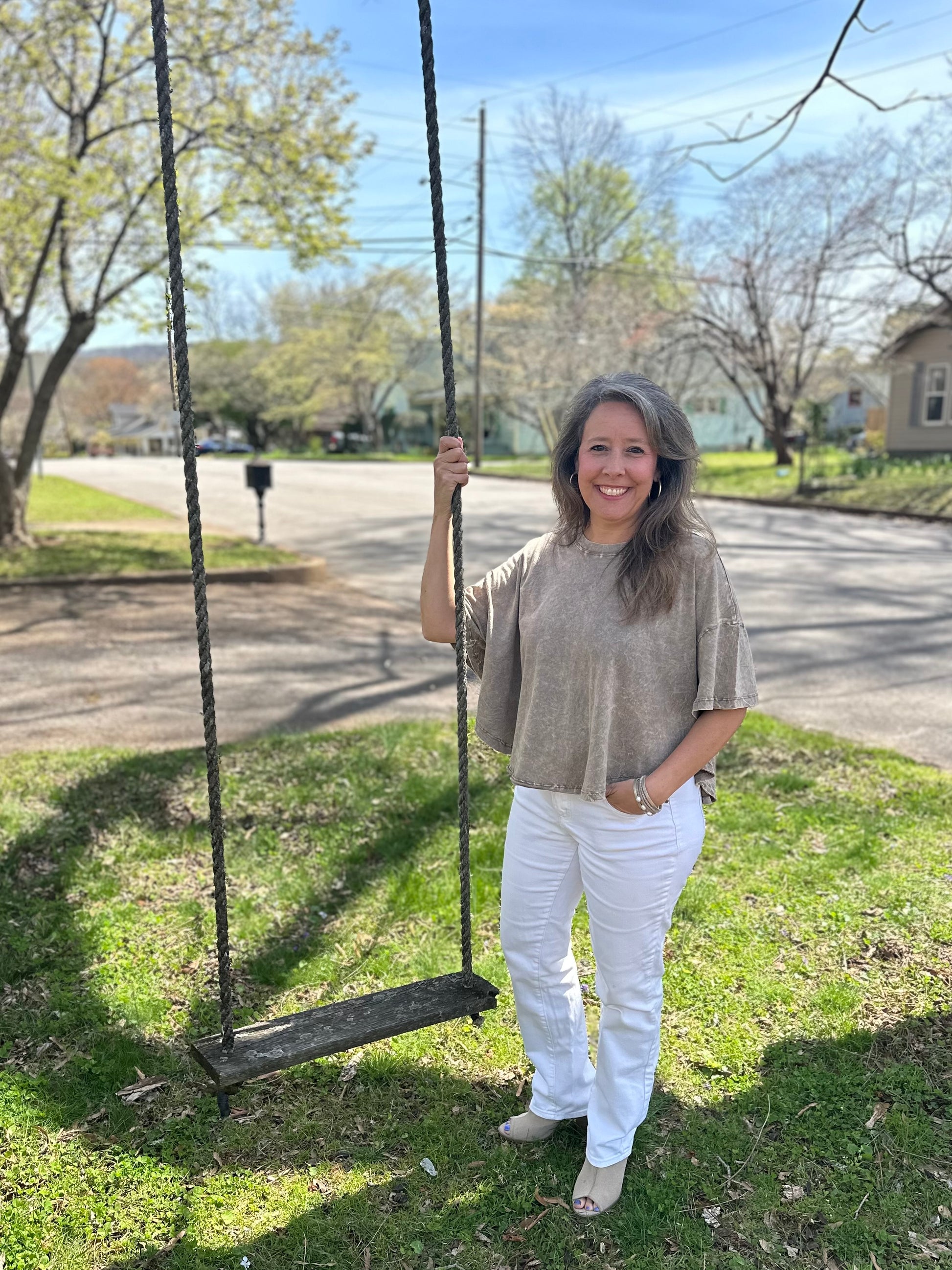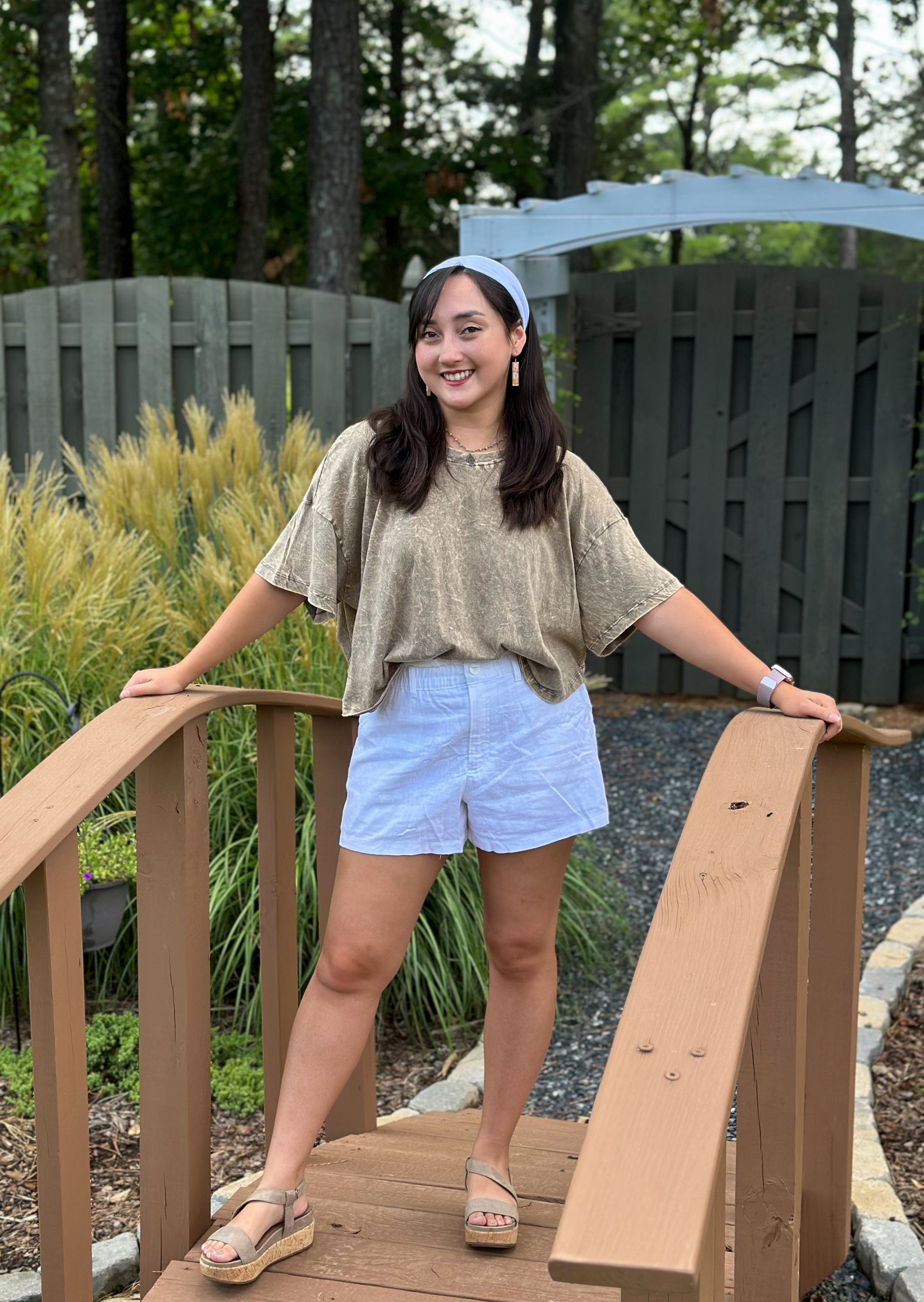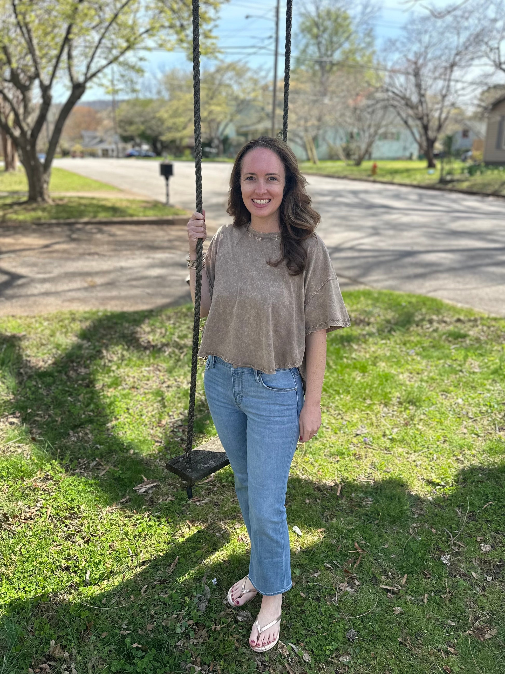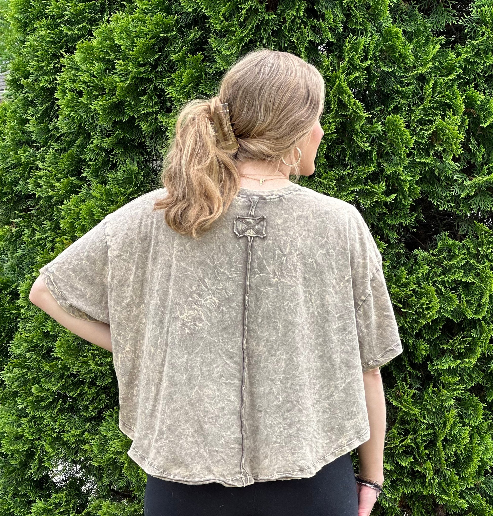 Crinkle Washed Cotton Round Neck Short Sleeve Top