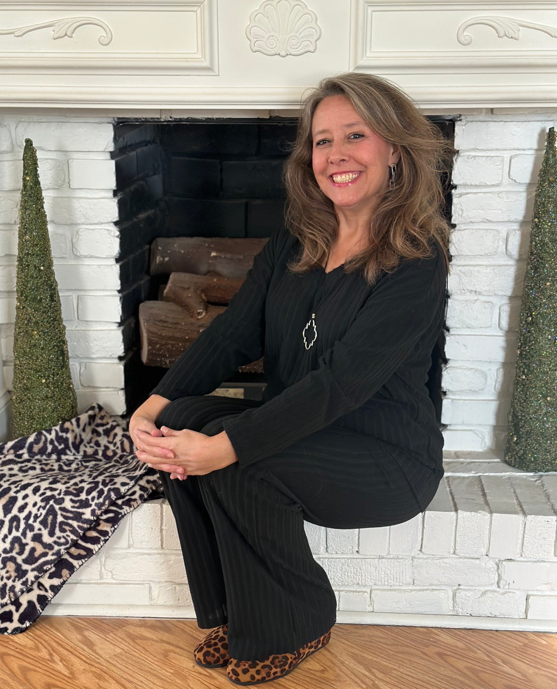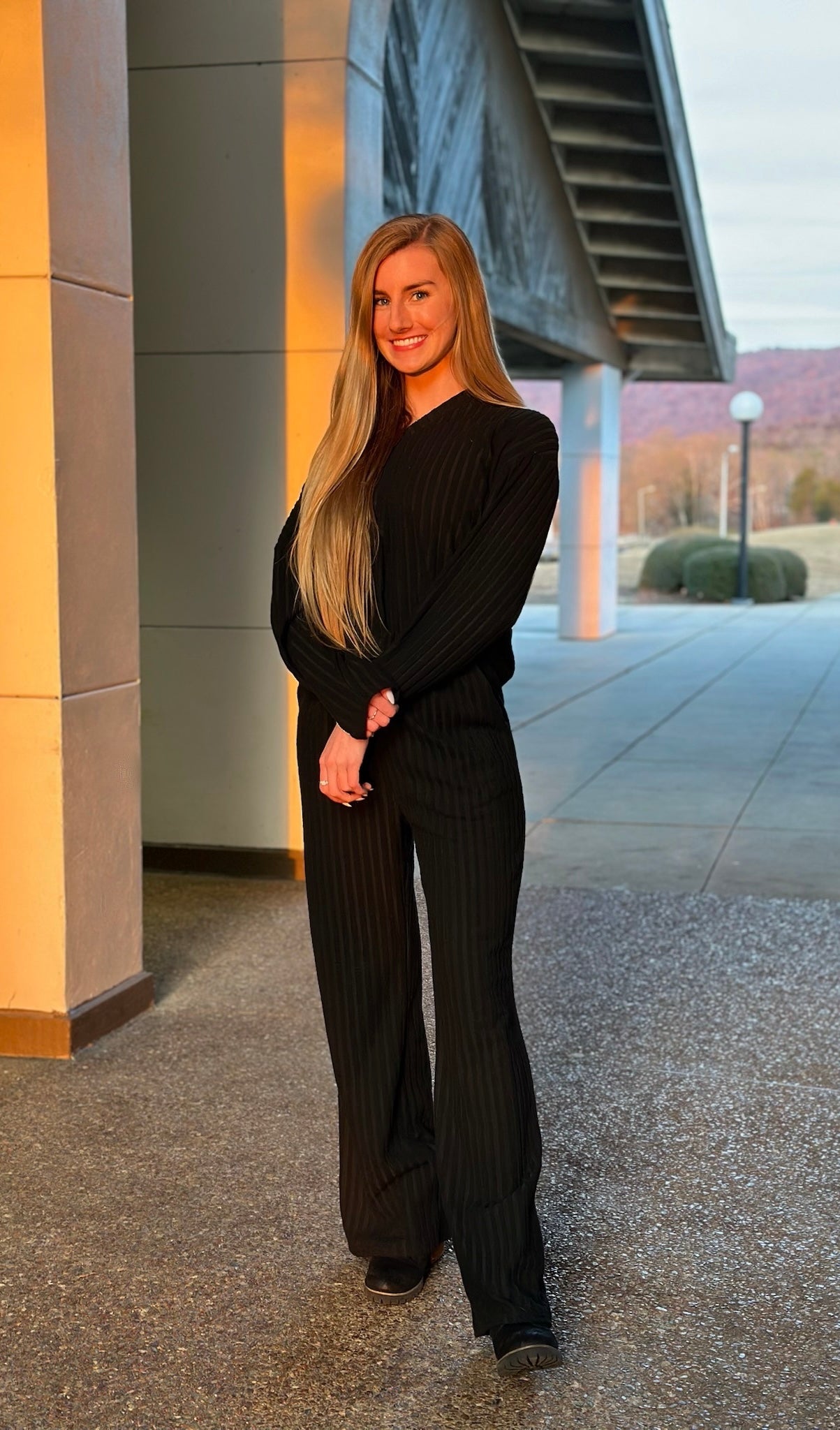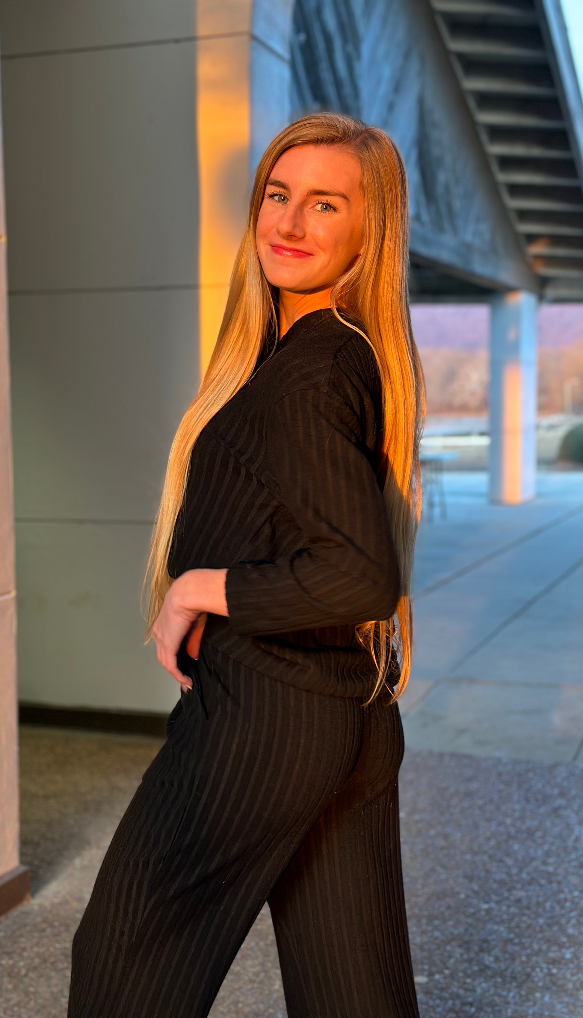 Ribbed Knit V Neck Slouchy Two Piece Outfit